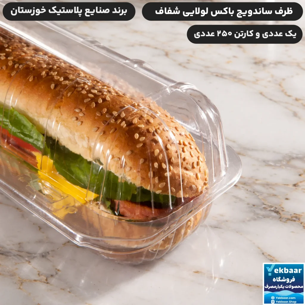 این ظرف با طراحی شفاف، درب متصل (لولایی)، بدنه مقاوم و ابعاد استاندارد، مخصوص ساندویچهای سرد و گرم طراحی شده و برای فروش تکی، بیرونبر و حتی بستهبندی ویترینی کاملاً مناسب است.