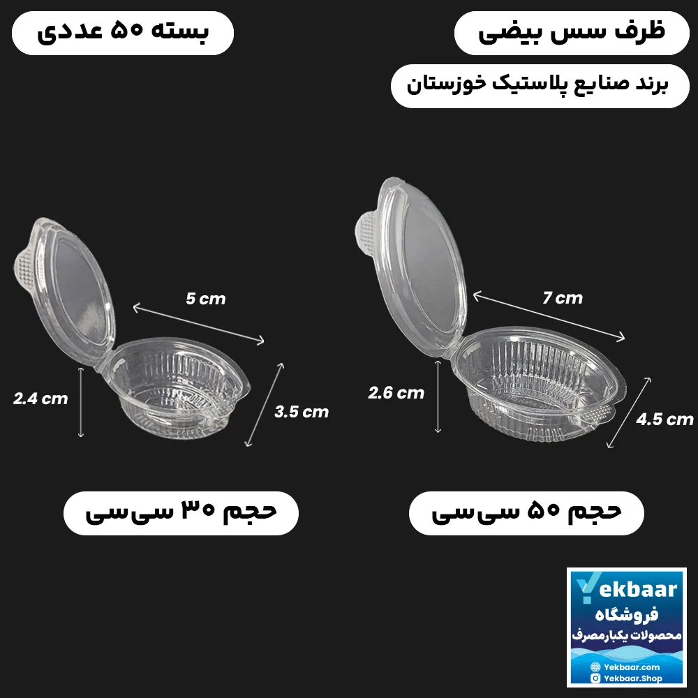 ظرف سس خوری درب لولایی بیضی یکبارمصرف 50 عددی - برند صنایع پلاستیک خوزستان